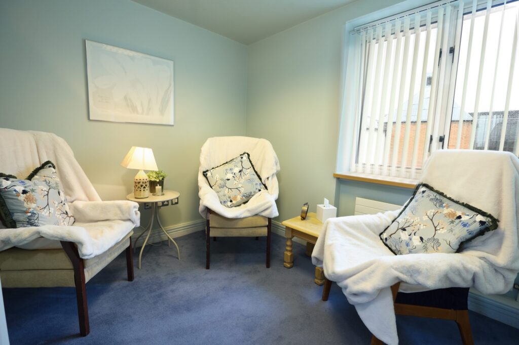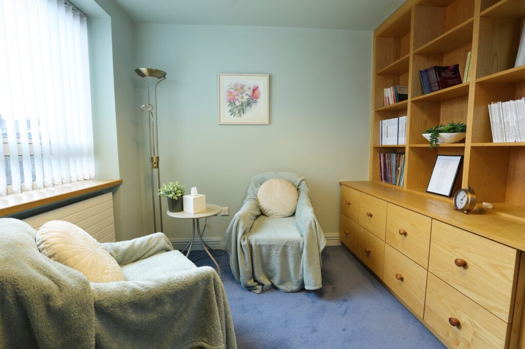 The therapy rooms are designed to promote a quiet and therapeutic environment. They are beautifully decorated, warm and inviting and wheelchair accessible. They provide space, privacy and comfort thus allowing for healing in the therapeutic space. A welcoming waiting space is available to clients, and kitchen facilities are available to therapists.